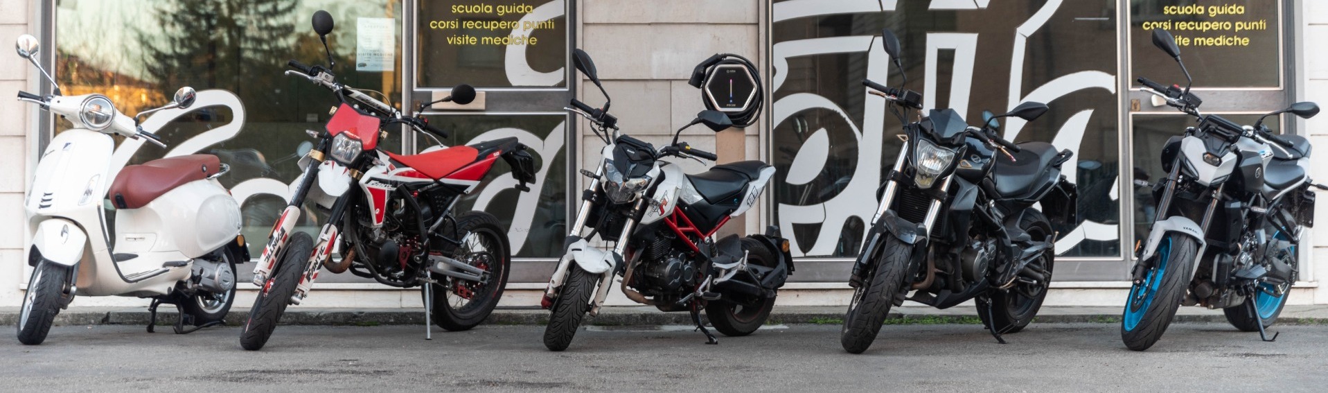 Per le guide e per l'esame viene utilizzato il motociclo dell'autoscuola, conforme ai requisiti previsti.